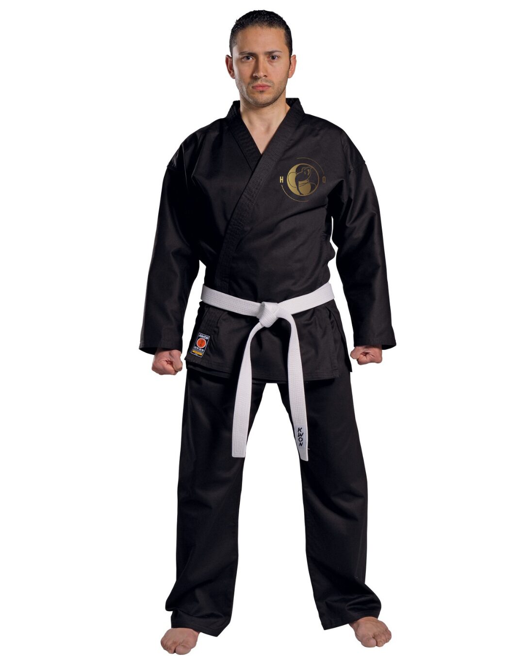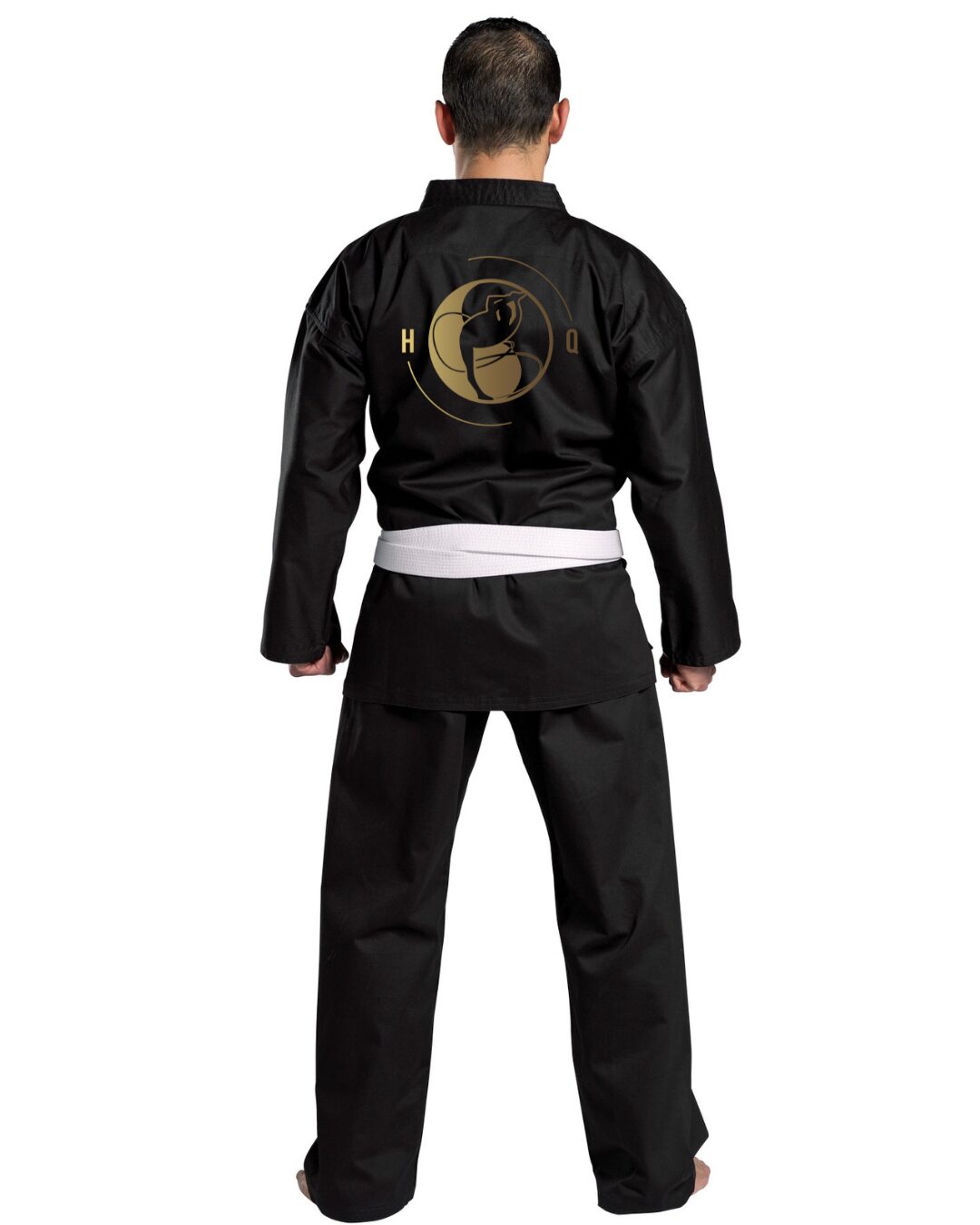 HQ Black Uniform Traditional 8 oz. With Gold HQ logo on chest and back of jacket.